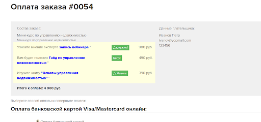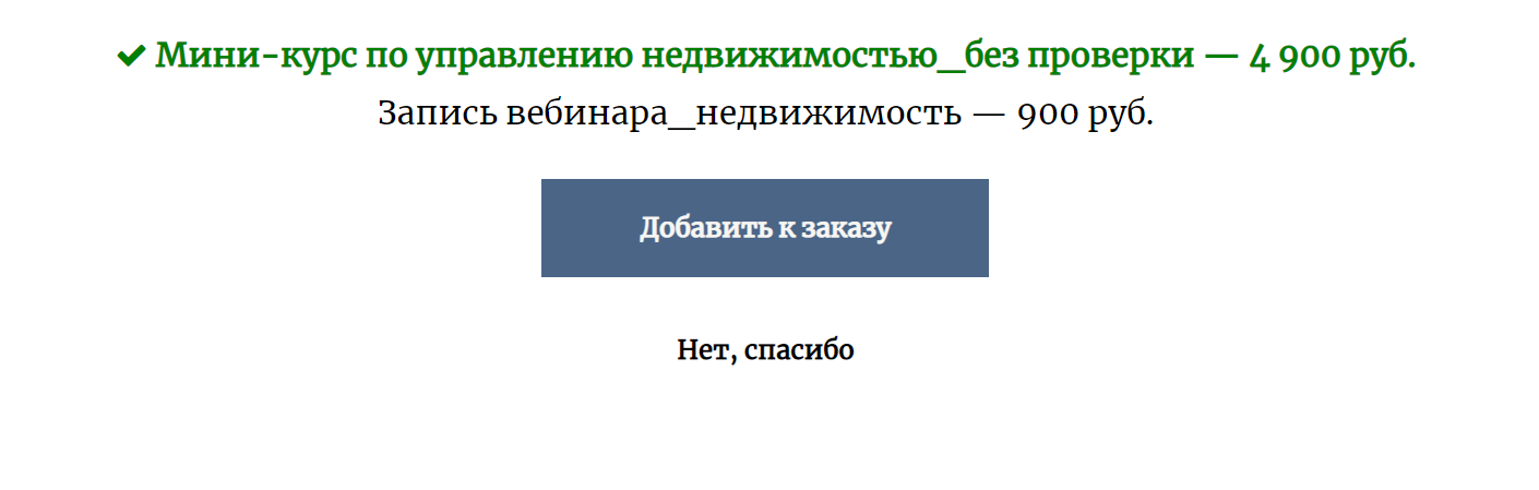 При покупке курса по управлению недвижимостью (основного продукта) необходимо было сделать клиенту еще несколько предложений по более дешевым, дополняющим продуктам.