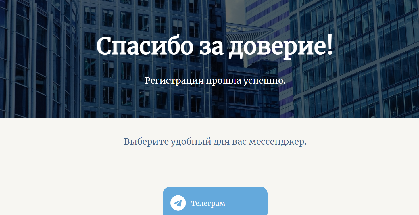 - на странице "Спасибо" пользователь имел возможность выбрать удобный мессенджер