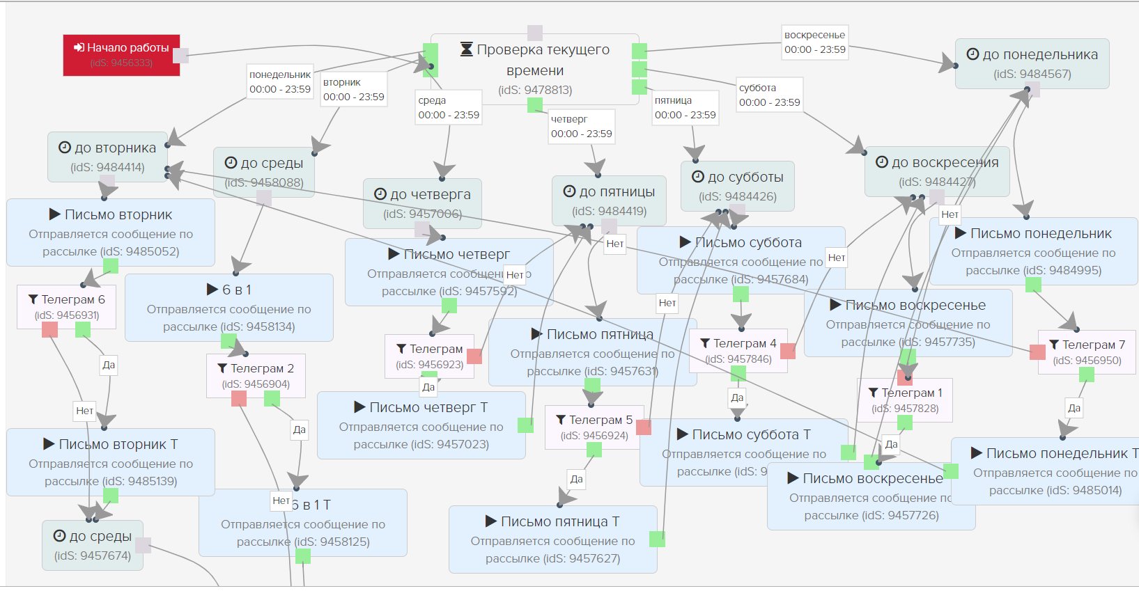 - регистрация в пятницу - 4 письма (суббота, воскресенье, понедельник, вторник)