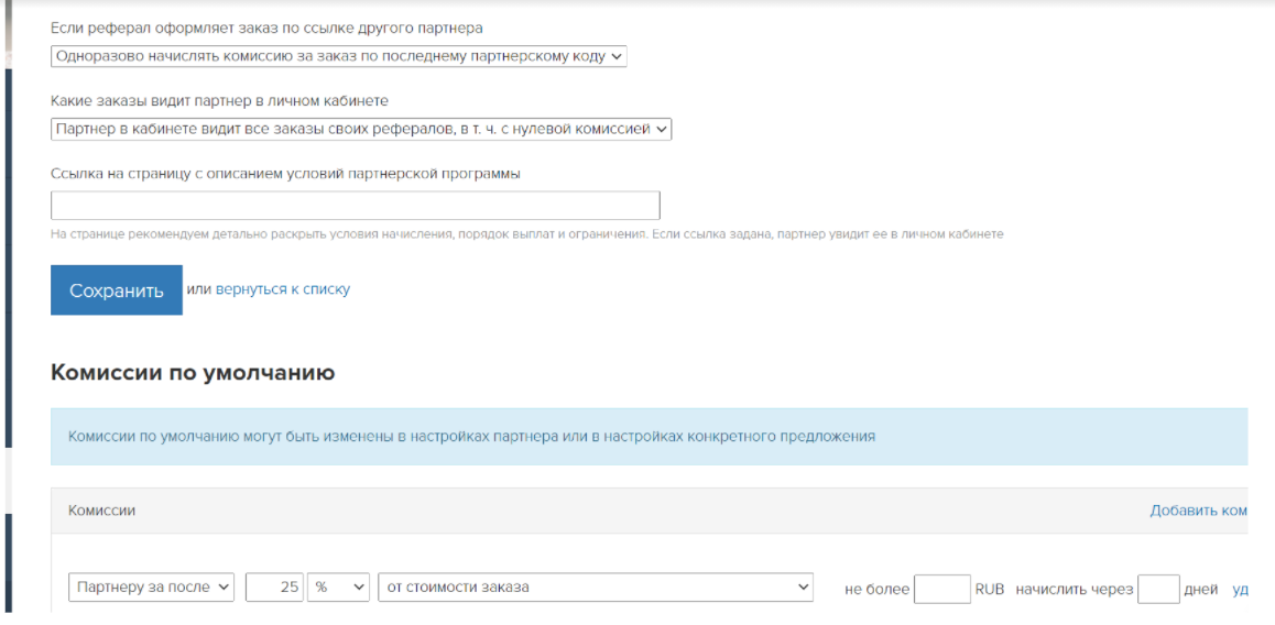 Заказ состоял в настройке партнерской программы по следующим условиям: